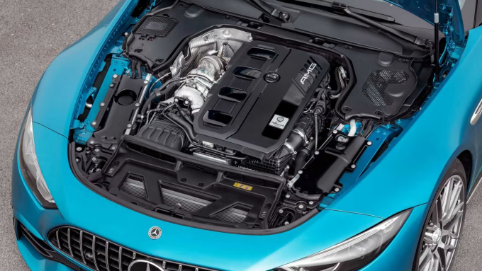 Μετά την αποκάλυψη δύο παραλλαγών με κινητήρα V8, η Mercedes SL-AMG, έκανε την χρονιά που πέρασε το ντεμπούτο της, με μια έκδοση υπερτροφοδοτούμενου κινητήρα 2 λίτρων. Περιστρεφόμενος για να κάθεται κατά μήκος και να κινεί τους πίσω τροχούς, συνδυάζεται με αυτόματο κιβώτιο ταχυτήτων πολλαπλού συμπλέκτη εννέα σχέσεων. Ο τετρακύλινδρος κινητήρας «M139» αποδίδει 380 PS και 48 κιλά ροπής.