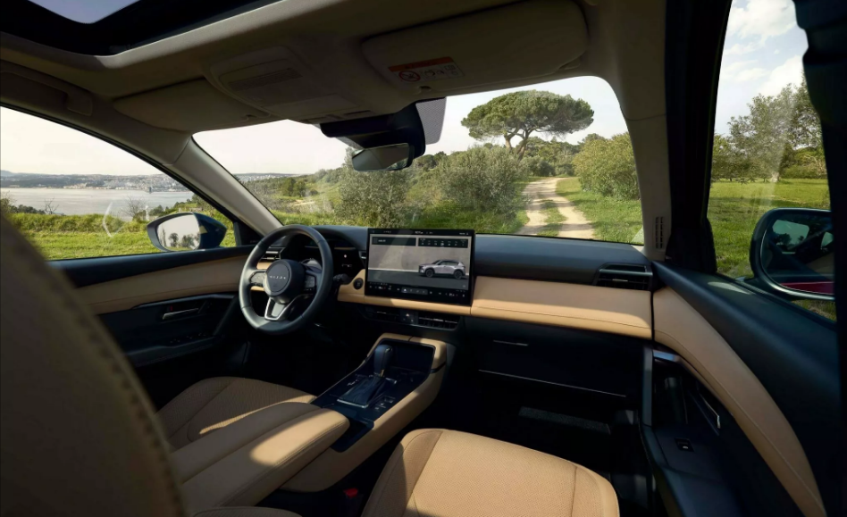 Το εσωτερικό του νέου CX-5 κυριαρχείται από μια τεράστια κεντρική οθόνη. Η στάνταρ οθόνη έχει διαγώνιο 12,9 ίντσες, αλλά οι αγοραστές μπορούν να επιλέξουν μια κολοσσιαία οθόνη 15,6 ιντσών—μεγαλύτερη ακόμη και από αυτή ενός Tesla Model 3. Για να επιτευχθεί αυτό, η Mazda αφαίρεσε σχεδόν όλα τα φυσικά χειριστήρια. Ο γνώριμος περιστροφικός διακόπτης ανήκει στο παρελθόν, ενώ ακόμη και τα χειριστήρια του κλιματισμού έχουν ενσωματωθεί στο σύστημα infotainment, μια απόφαση που σίγουρα θα προκαλέσει συζητήσεις.