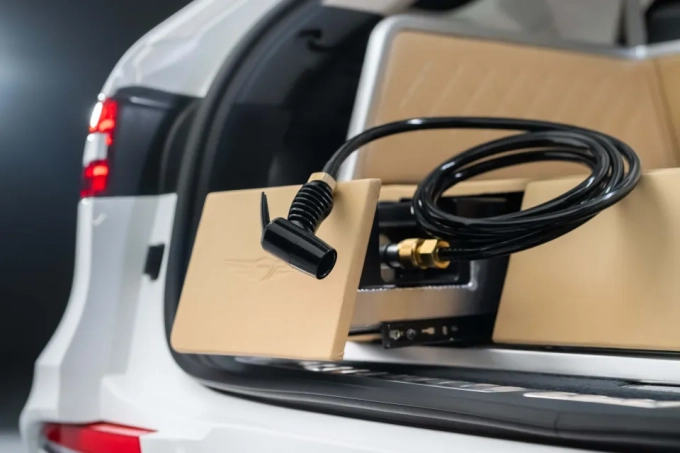 Η τεχνολογία Vehicle-to-load χρησιμοποιεί την μπαταρία του αυτοκινήτου για να τροφοδοτήσει μια σειρά από εργαλεία για την περιποίηση των σκύλων, συμπεριλαμβανομένου του ενσωματωμένου ντους.